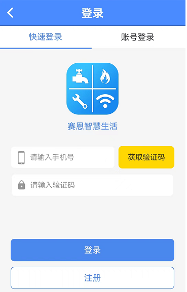 打開智慧生活A(yù)PP,可以以“快速登錄”或“賬號(hào)登錄”兩種方式登錄。“快速登錄”需要輸入手機(jī)號(hào)、獲取驗(yàn)證碼之后,輸入驗(yàn)證碼直接登錄。“賬號(hào)登錄”需要輸入已注冊(cè)的手機(jī)號(hào)以及密碼進(jìn)行登錄。如圖