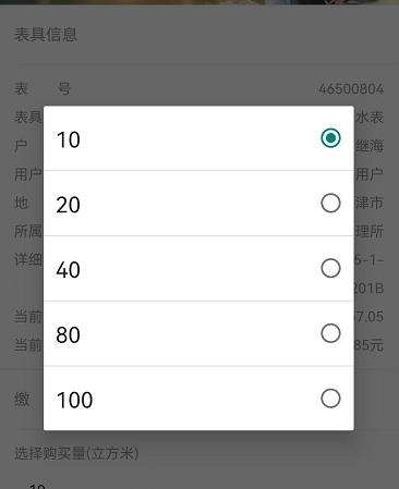 點(diǎn)擊繳費(fèi)充值,如果綁定了多塊水表,左右滑動(dòng)選擇要繳納水費(fèi)的表具后點(diǎn)擊繳費(fèi)按鈕。如圖