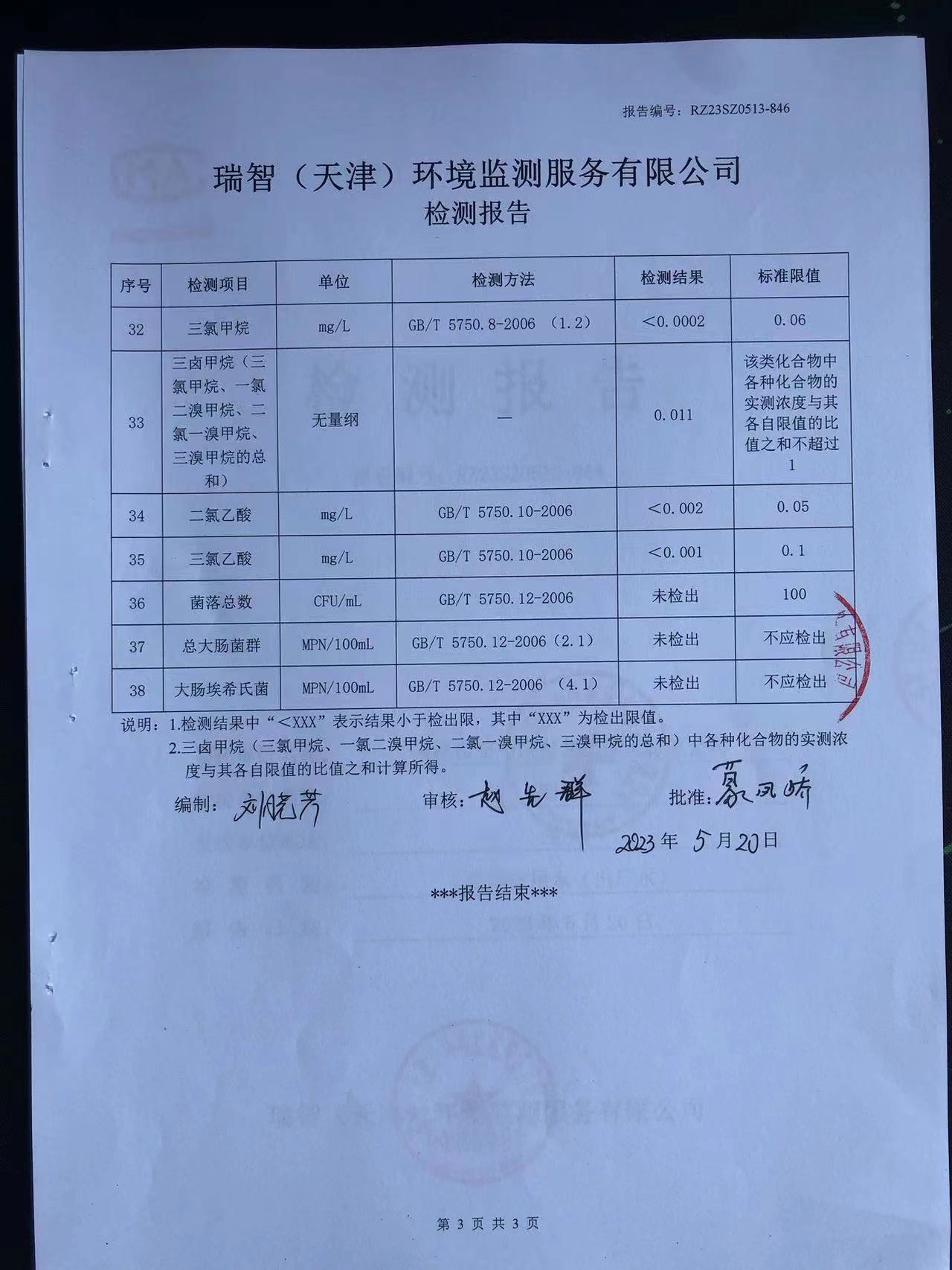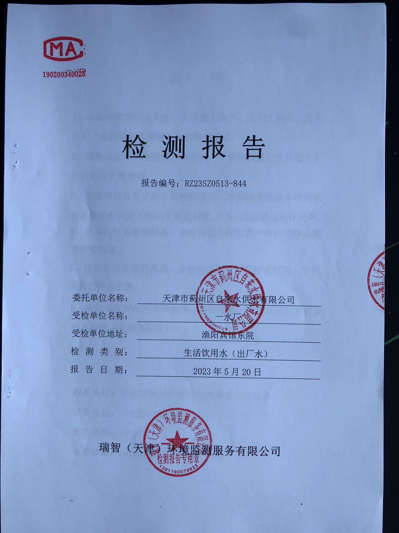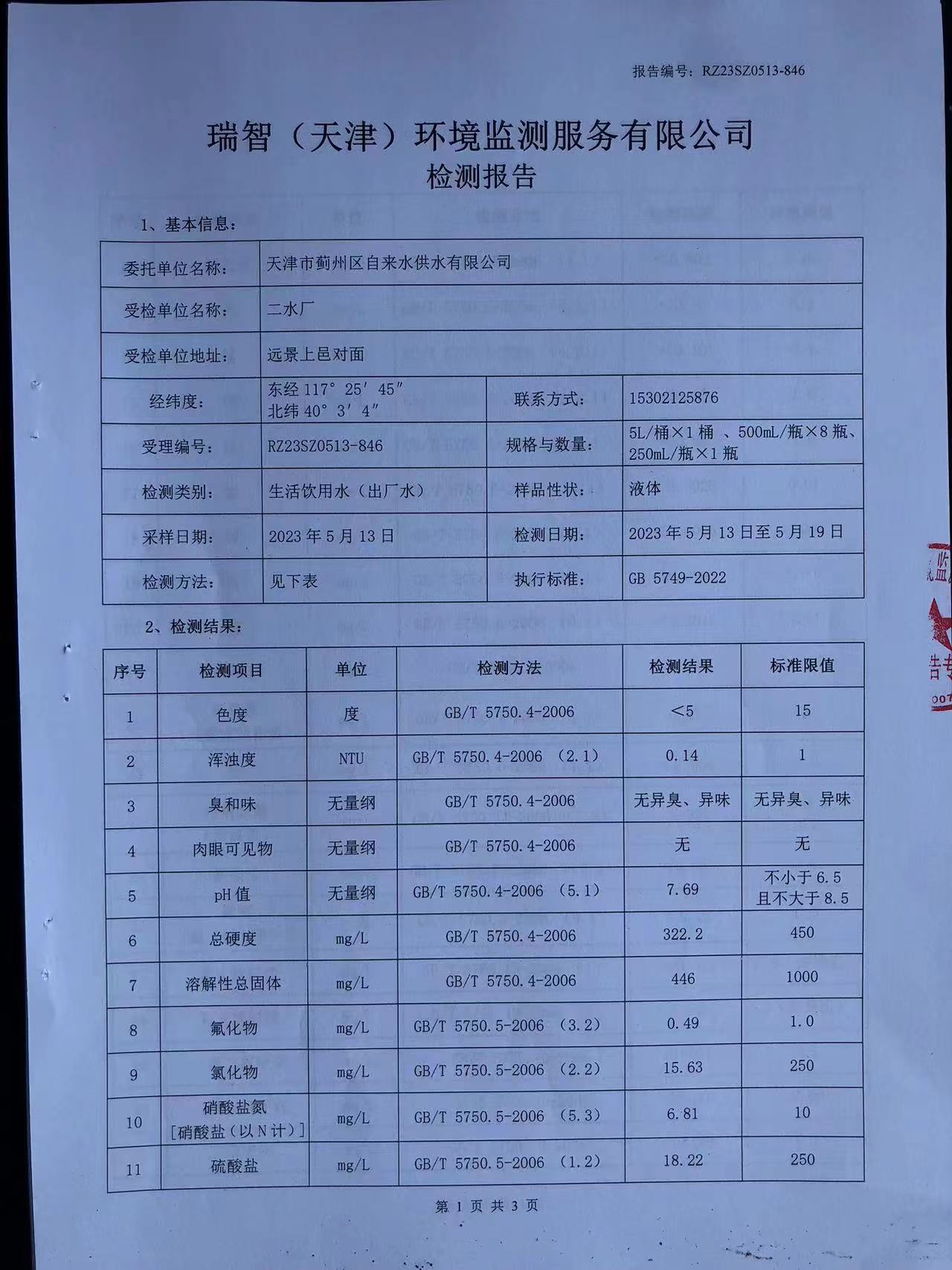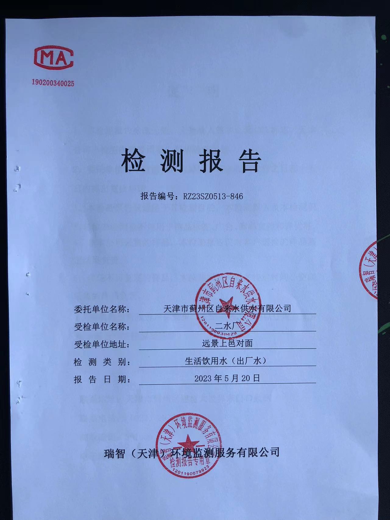 2023年5月份水質(zhì)檢測報(bào)告