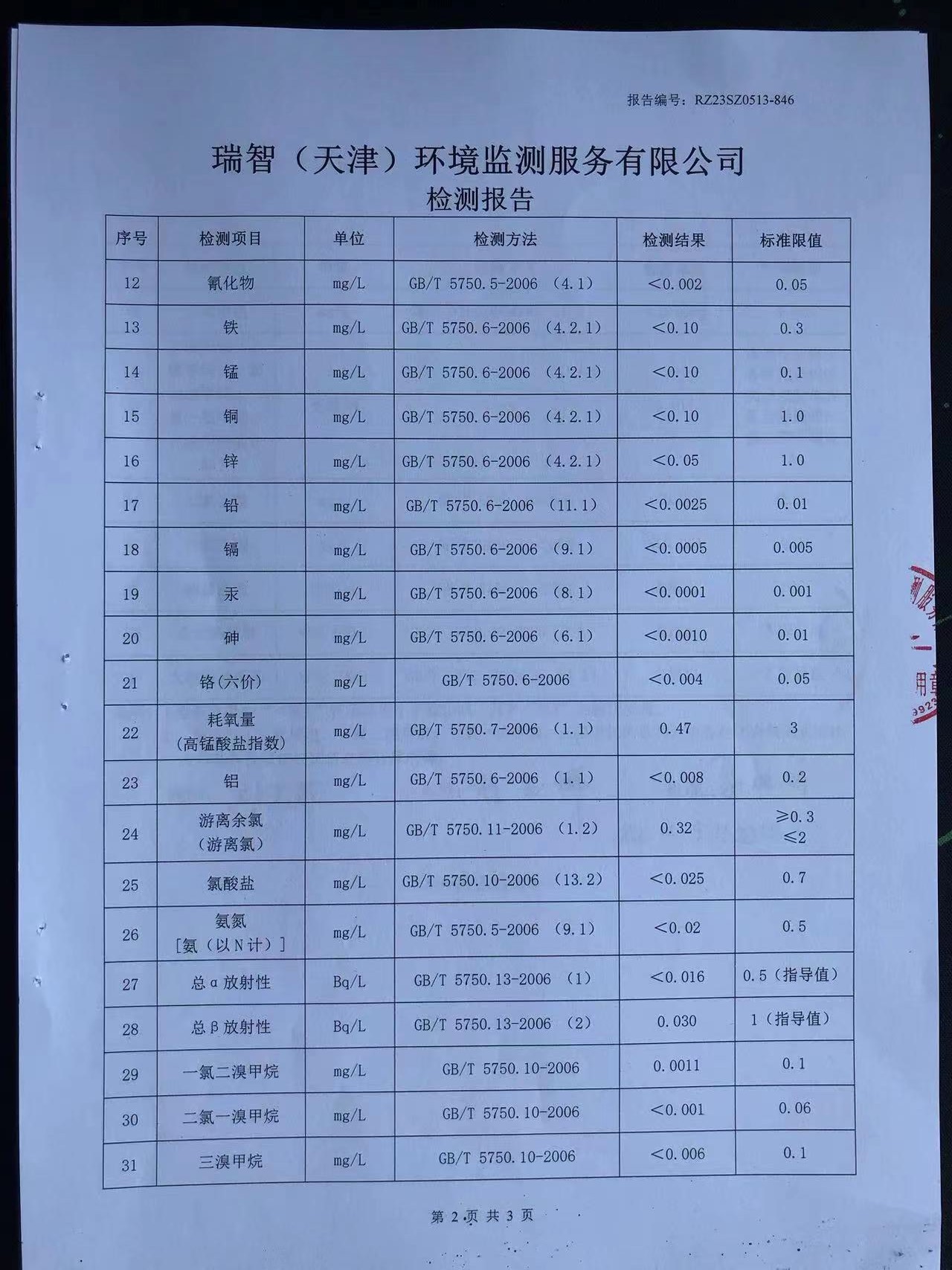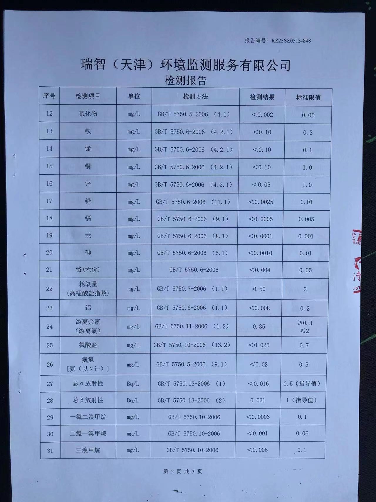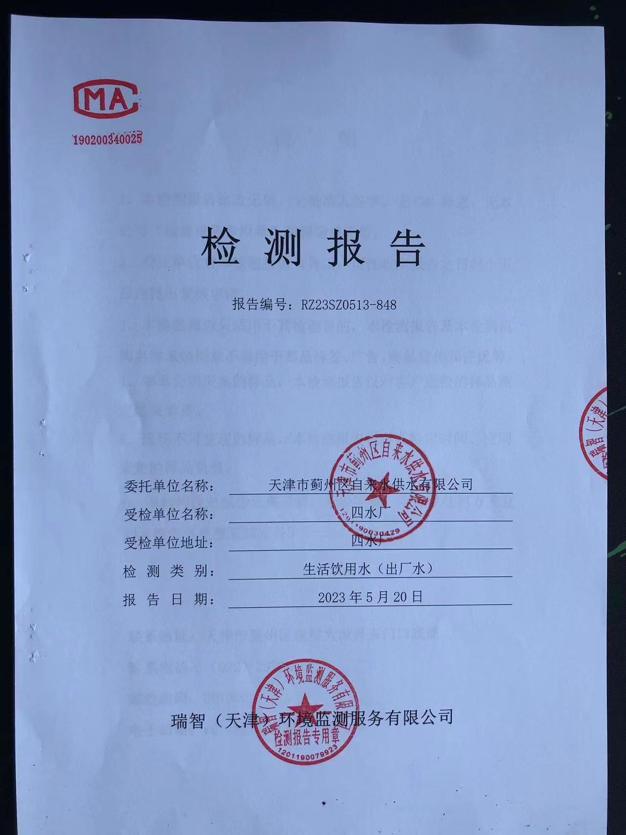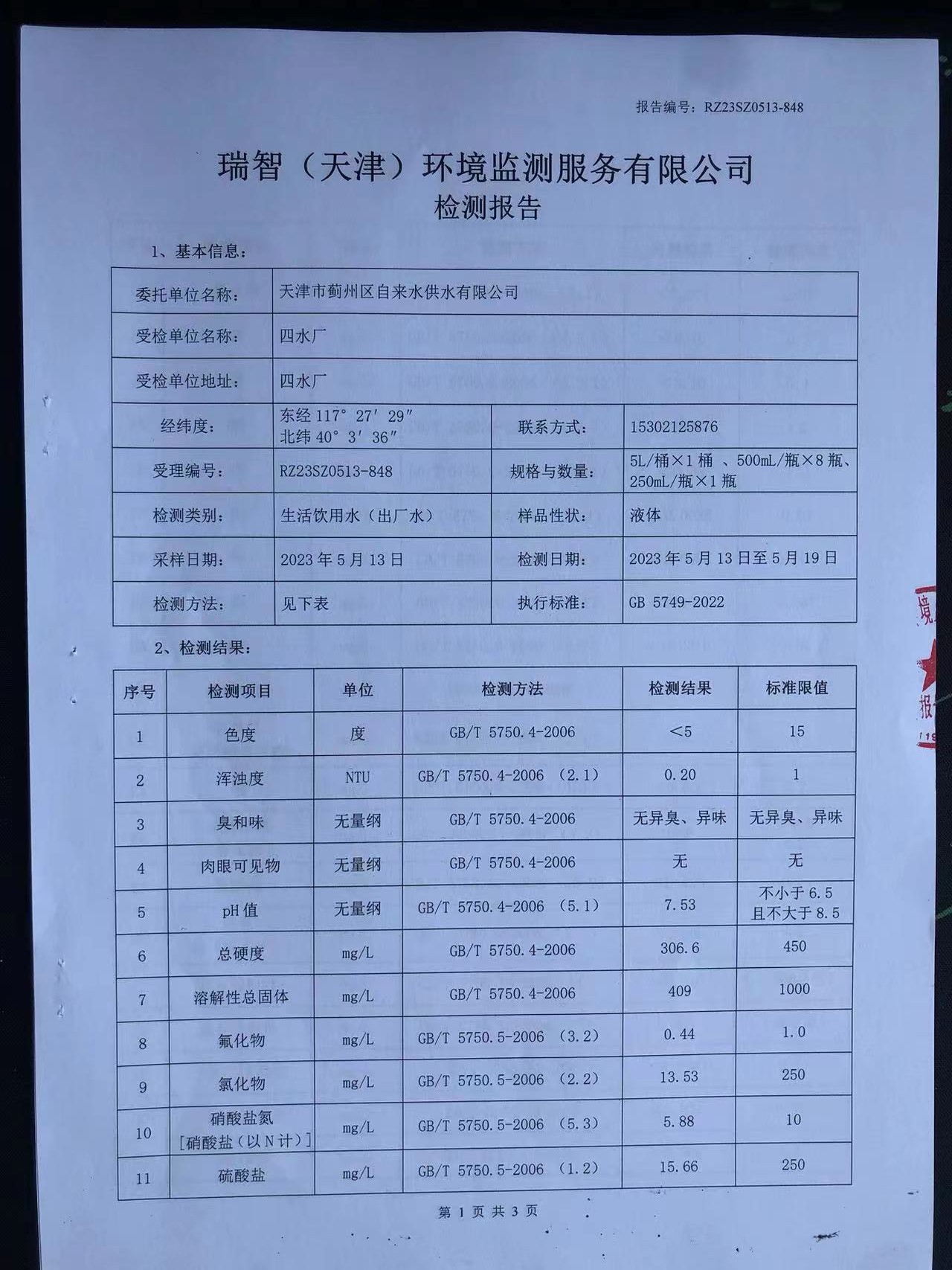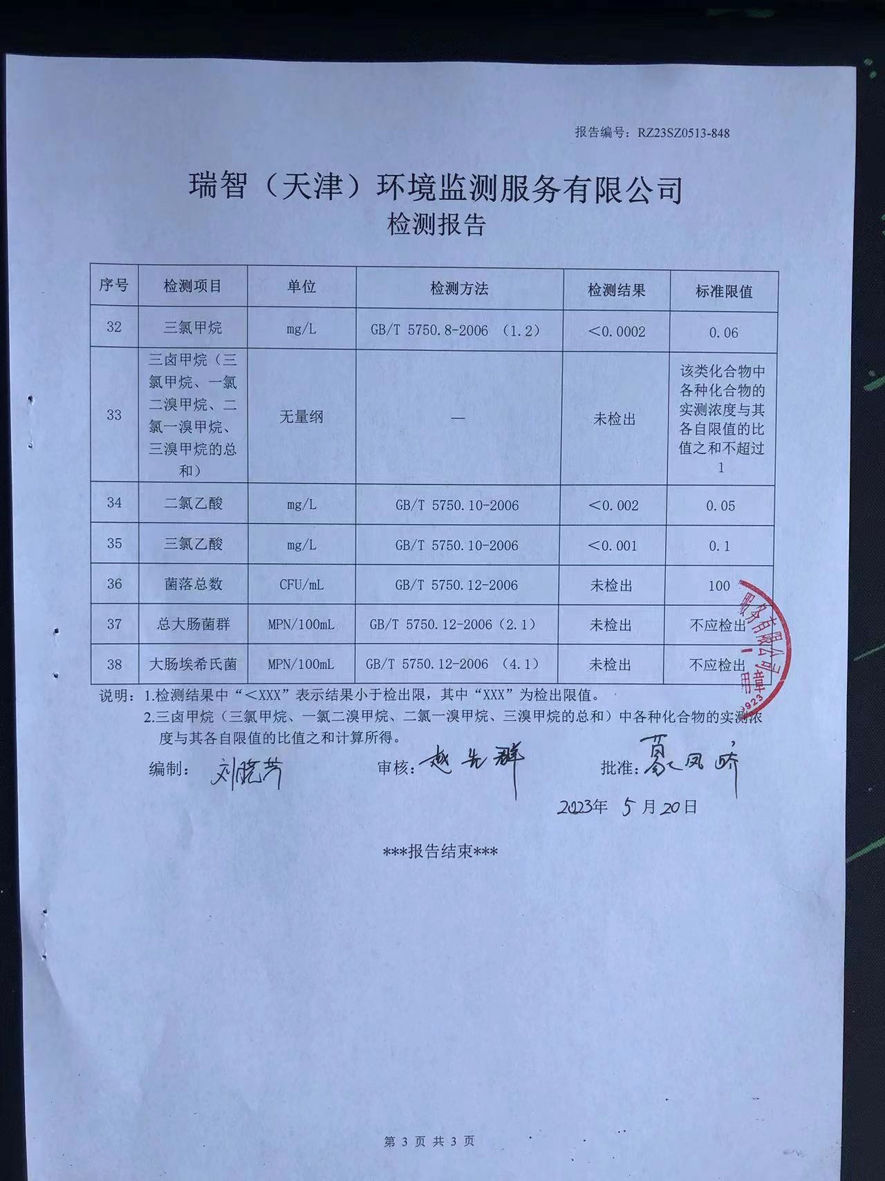 2023年5月份水質(zhì)檢測報(bào)告