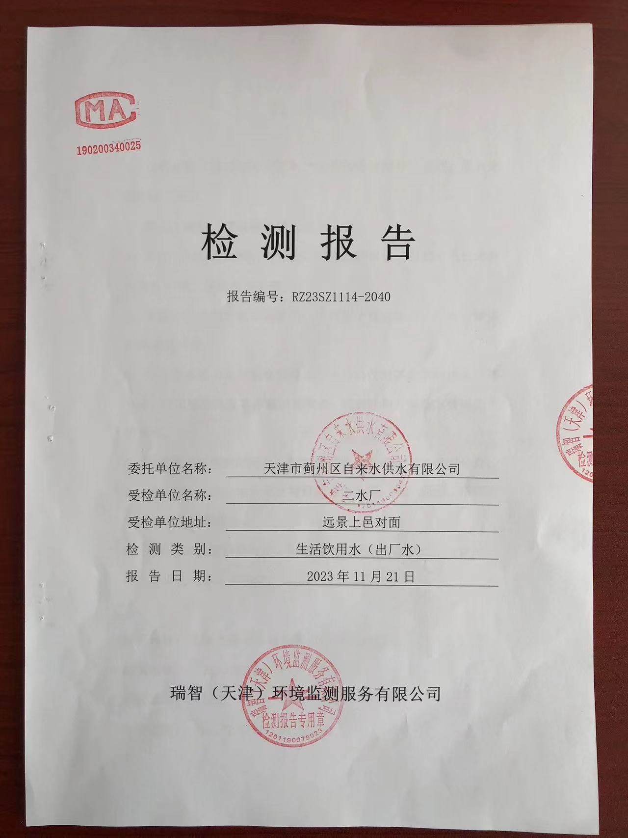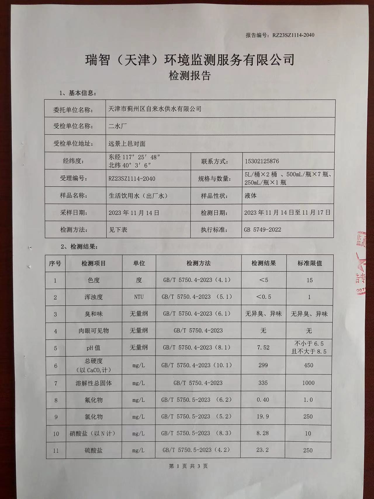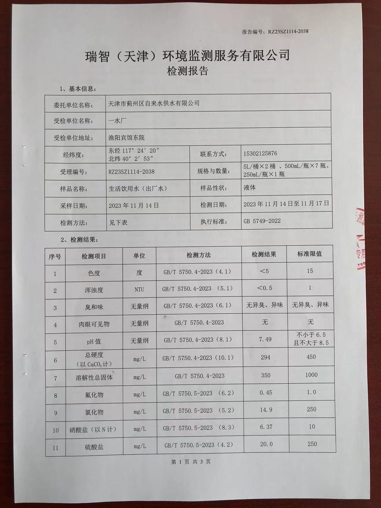 2023年11月份水質(zhì)檢測(cè)報(bào)告
