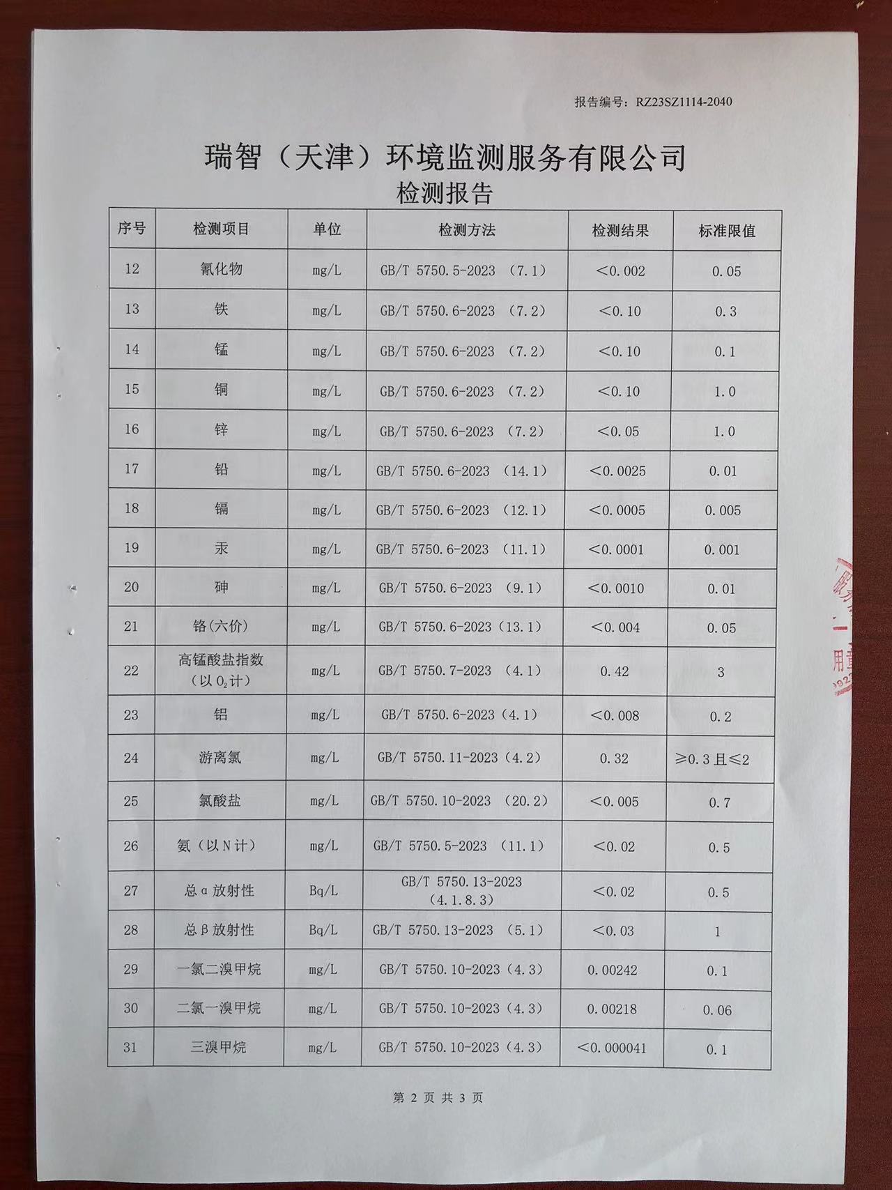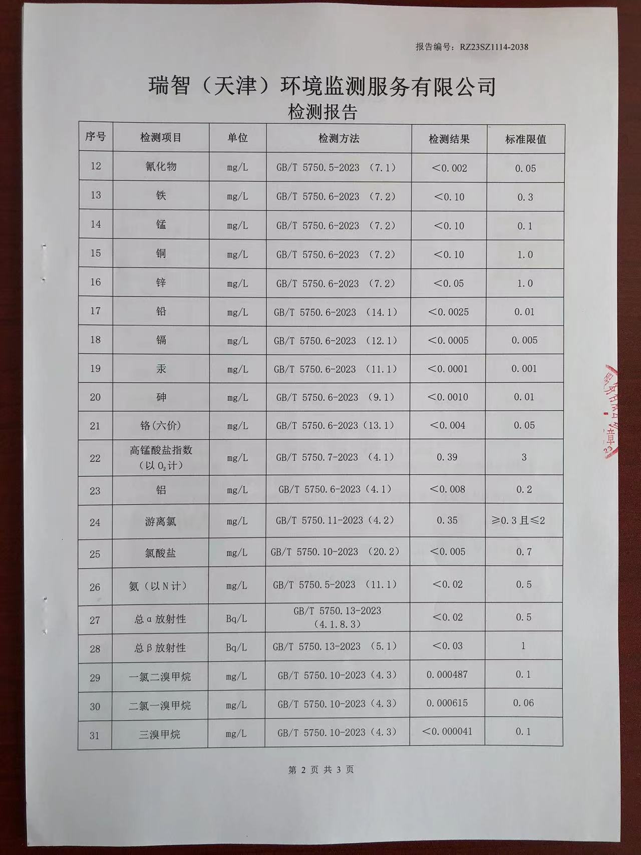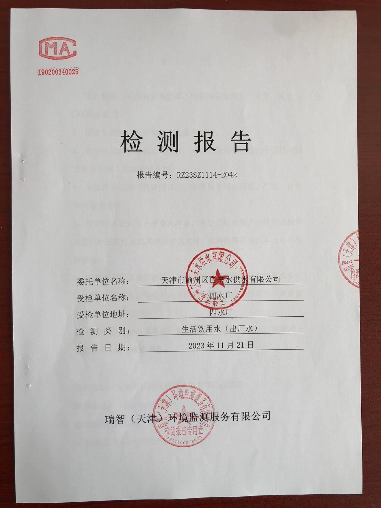 2023年11月份水質(zhì)檢測(cè)報(bào)告