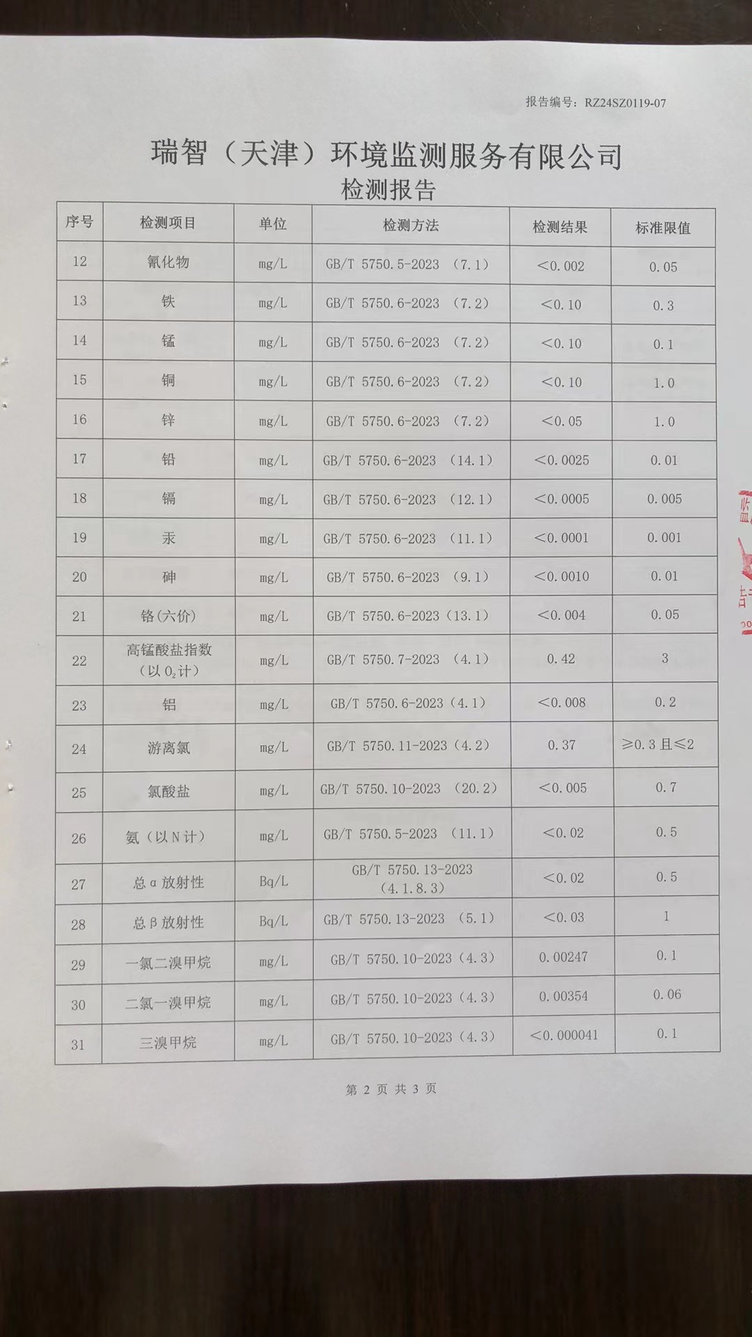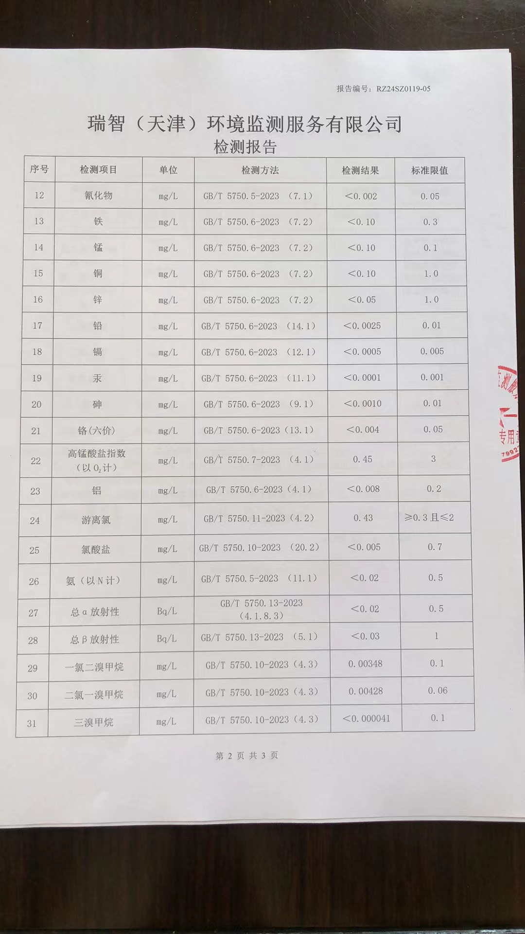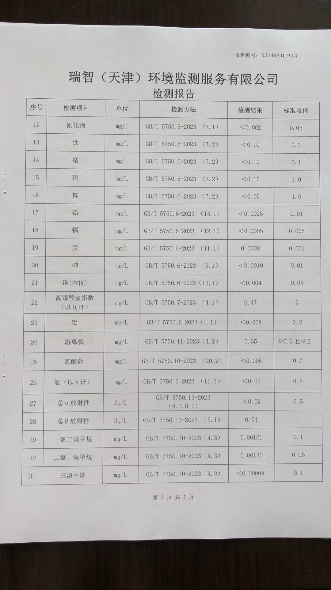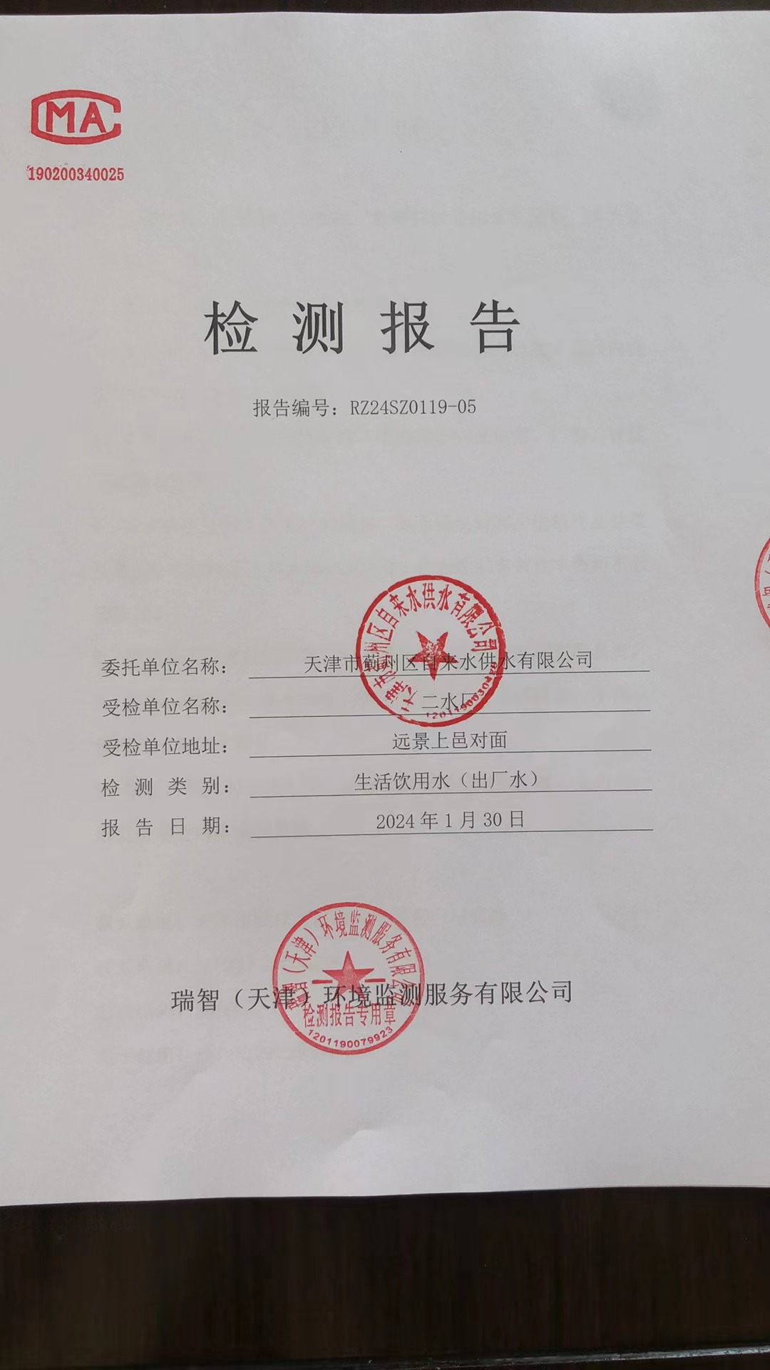 2024年1月份水質(zhì)檢測報(bào)告