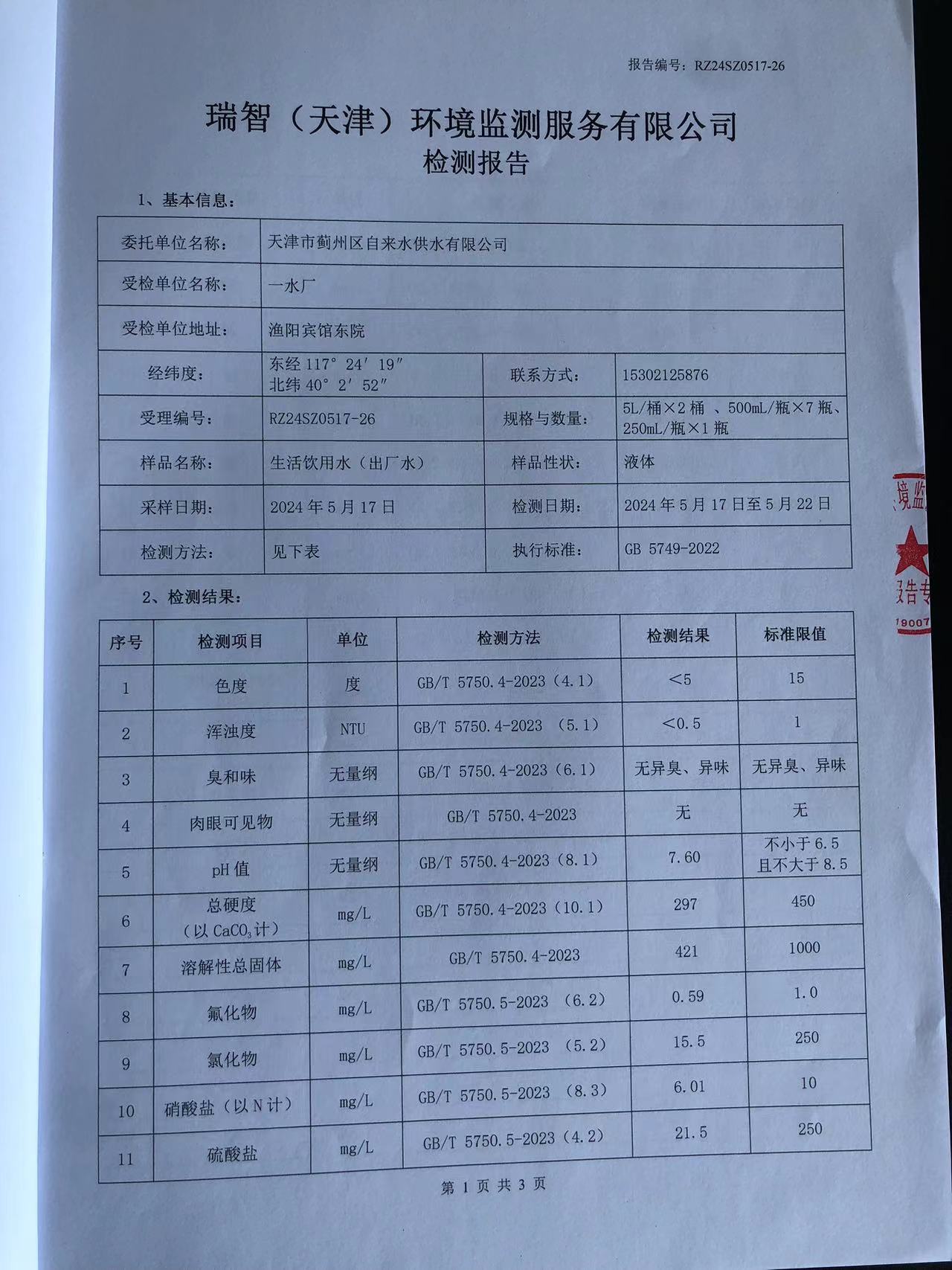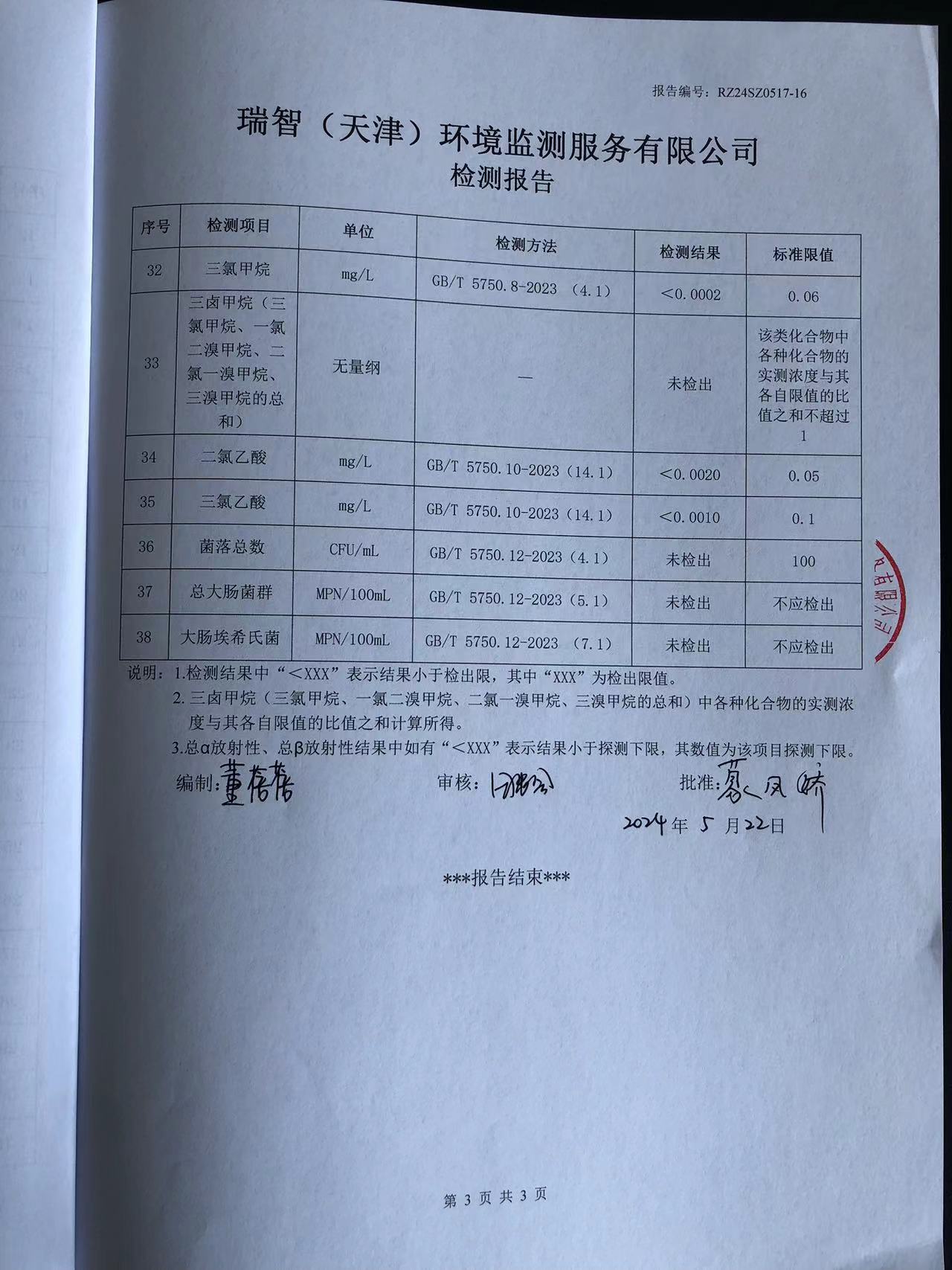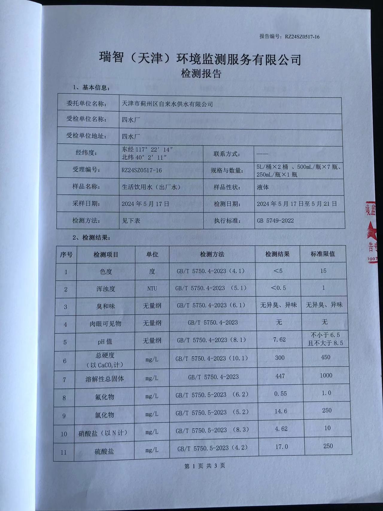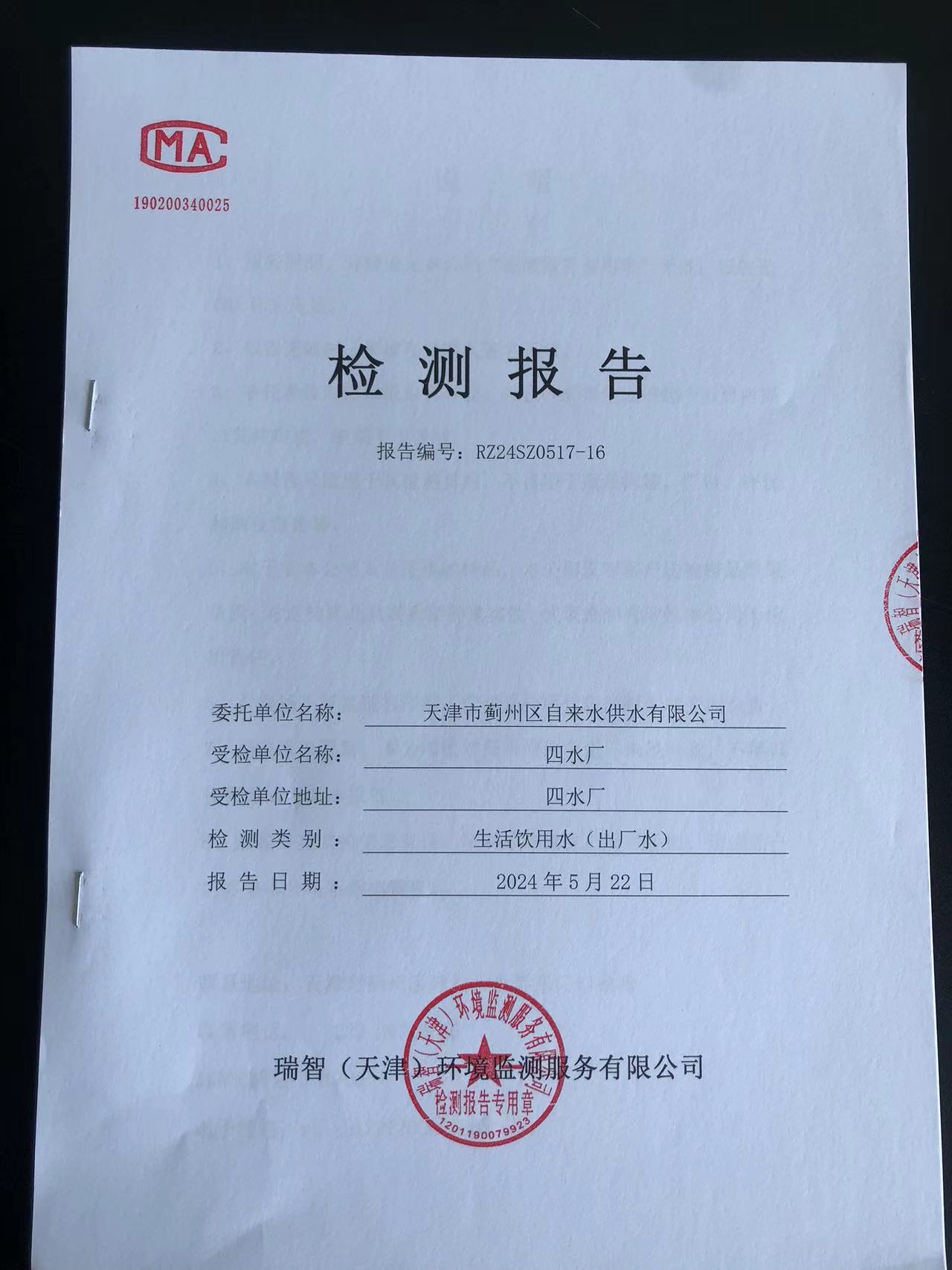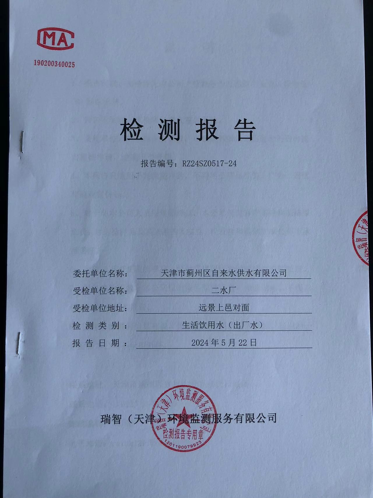 2024年5月份水質(zhì)檢測報告