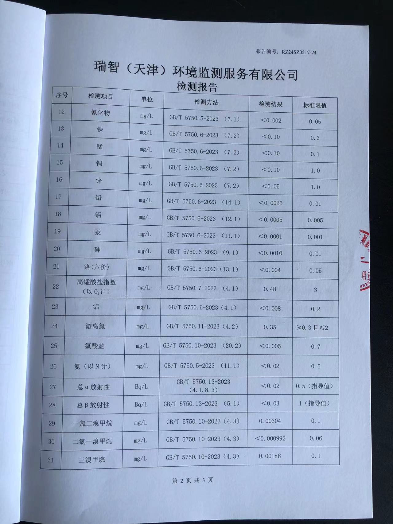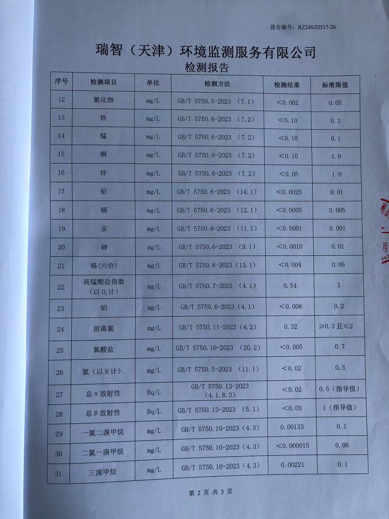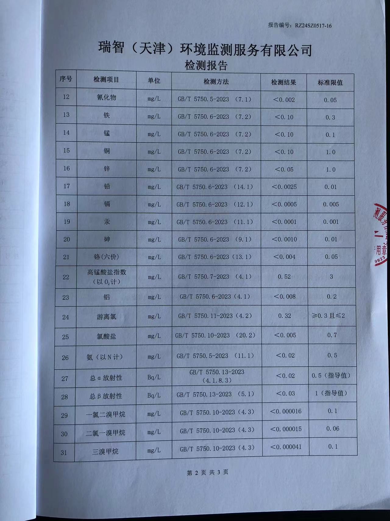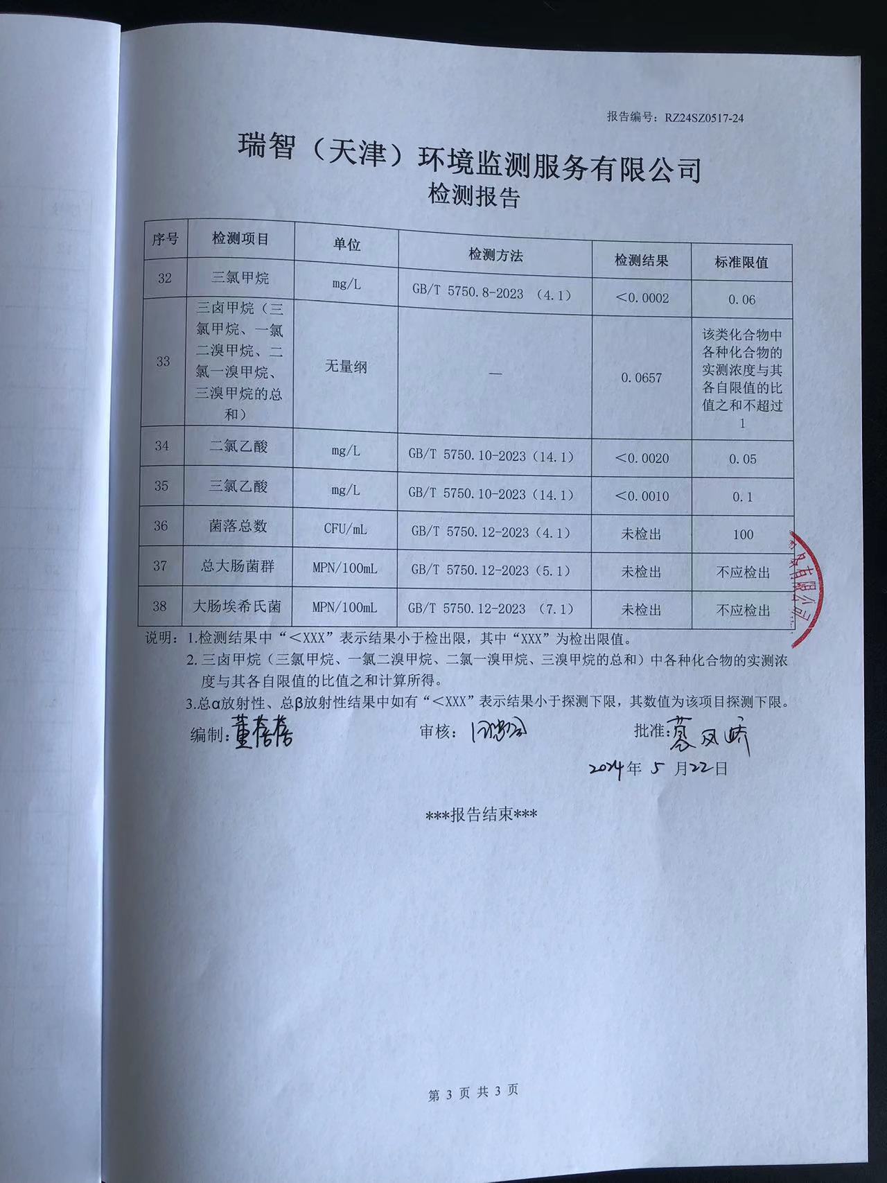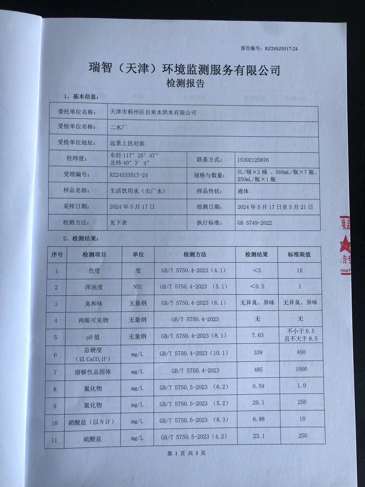 2024年5月份水質(zhì)檢測報告