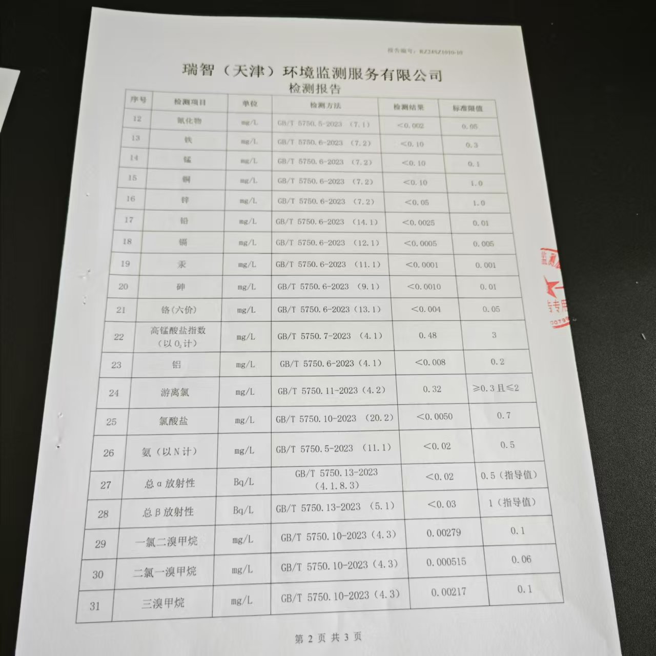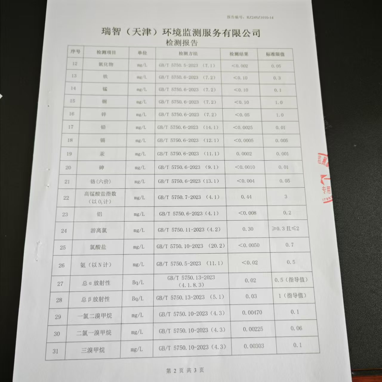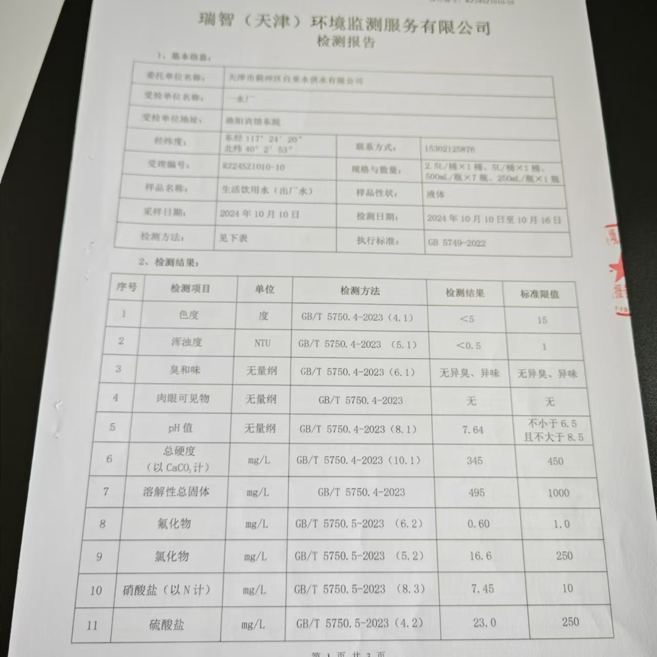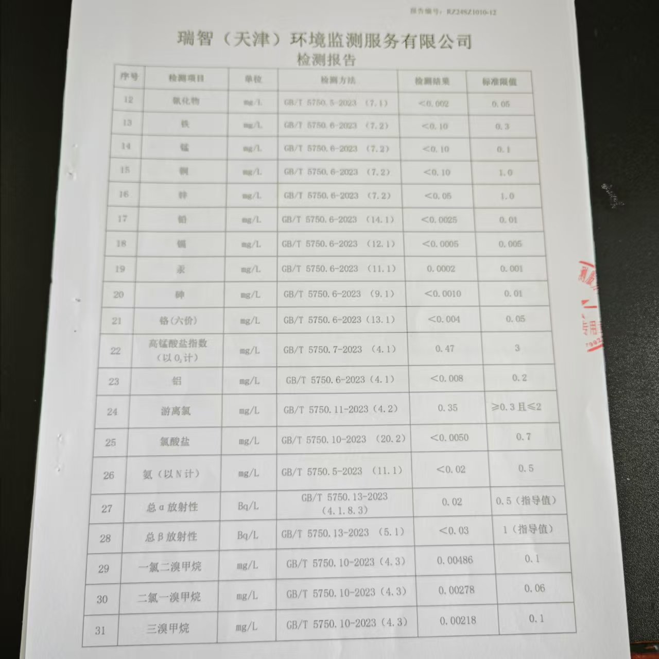 2024年10月份水質(zhì)檢測報(bào)告