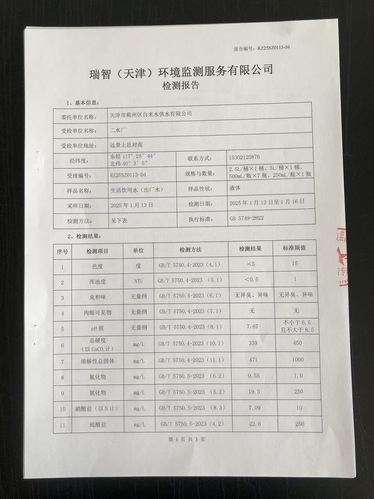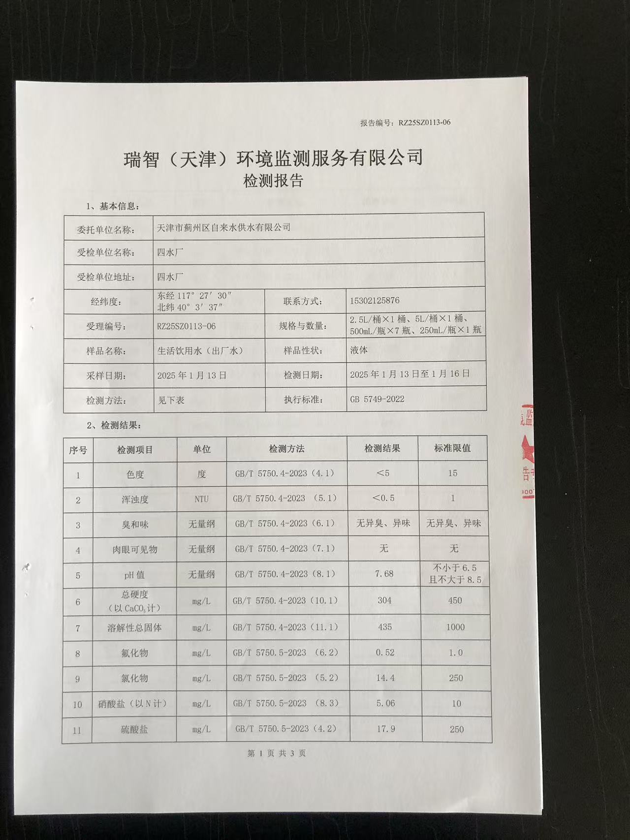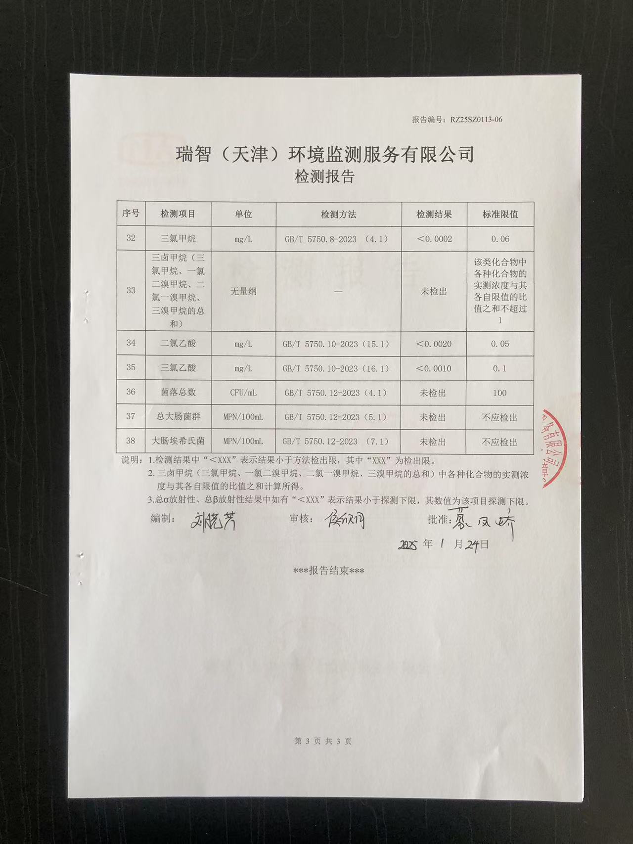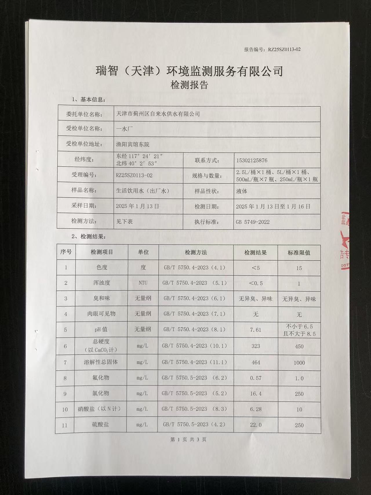 2025年1月份水質檢測報告