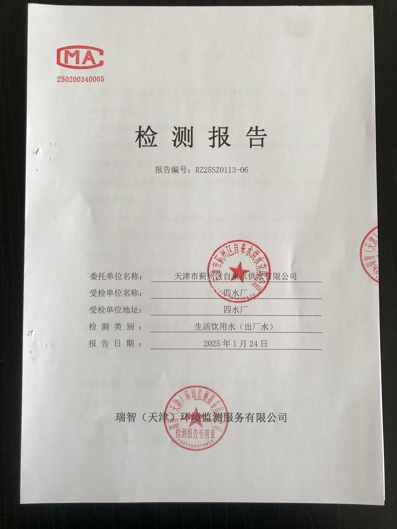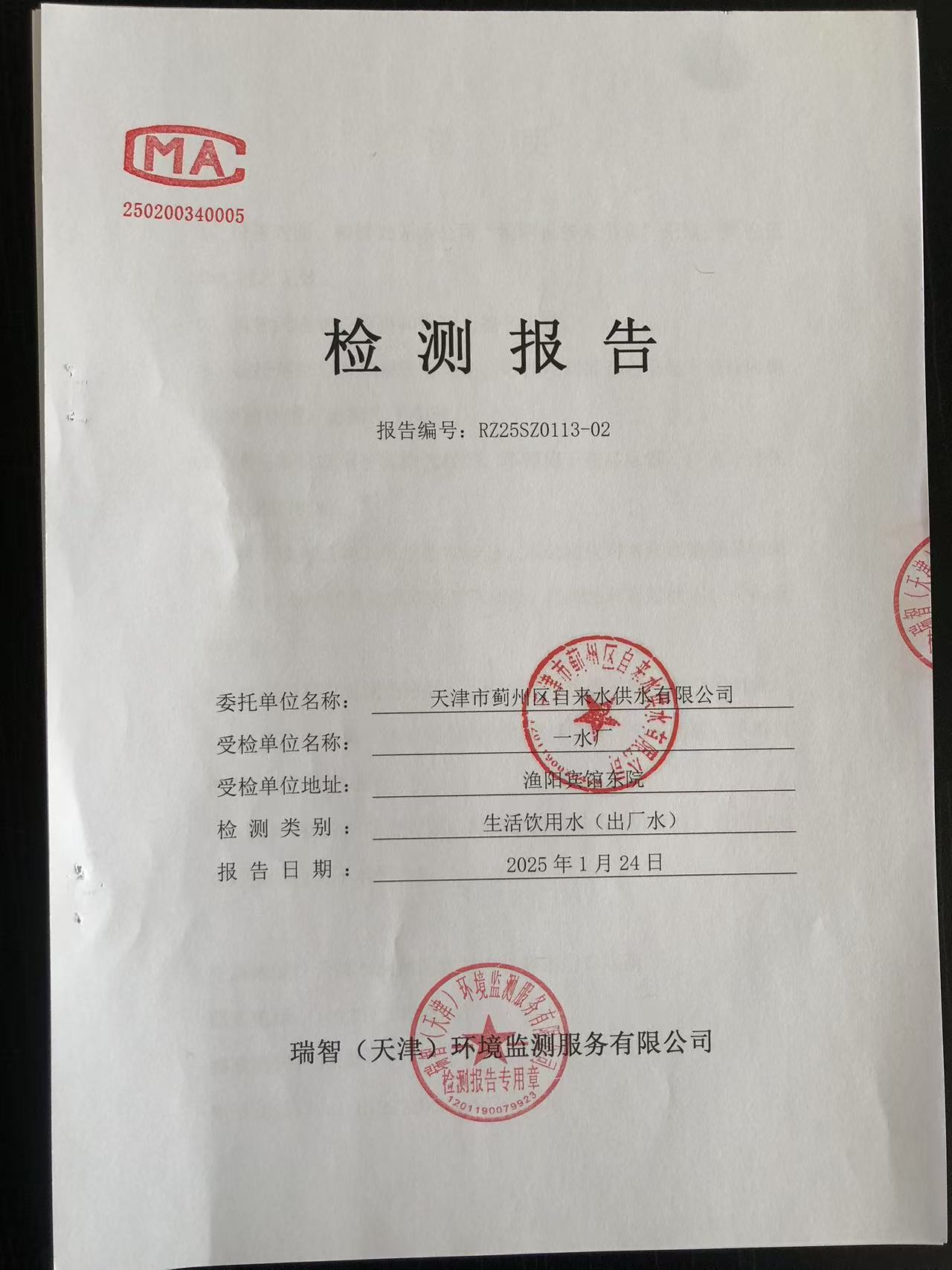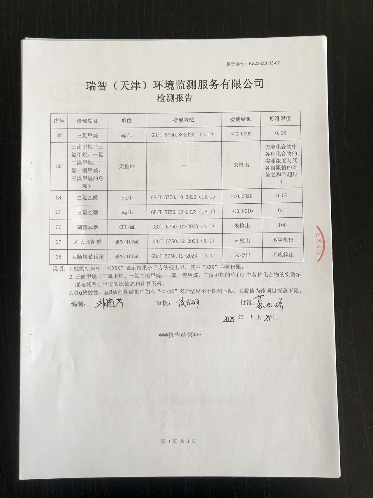 2025年1月份水質檢測報告