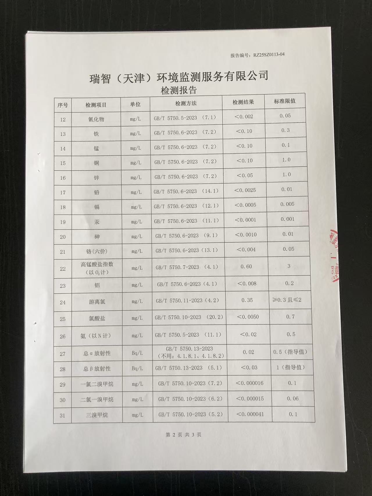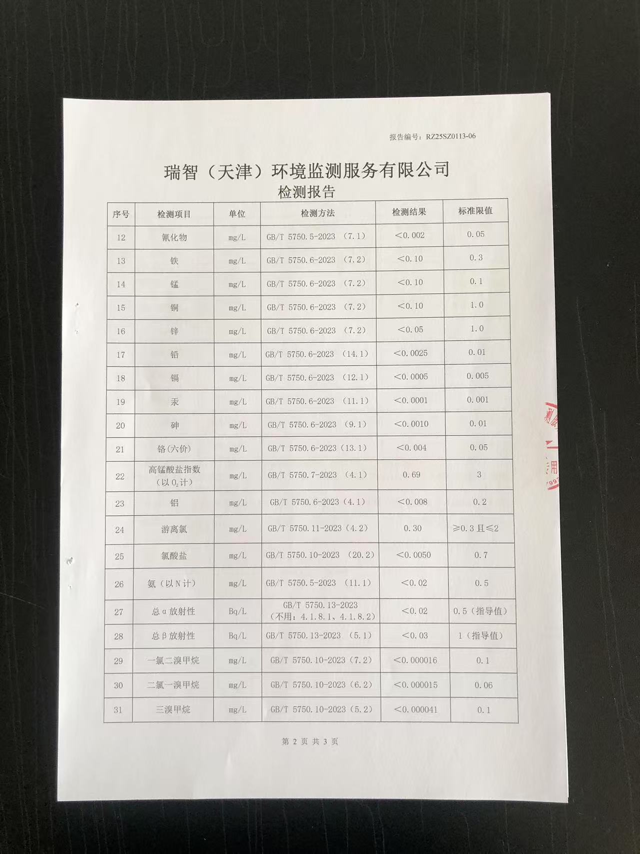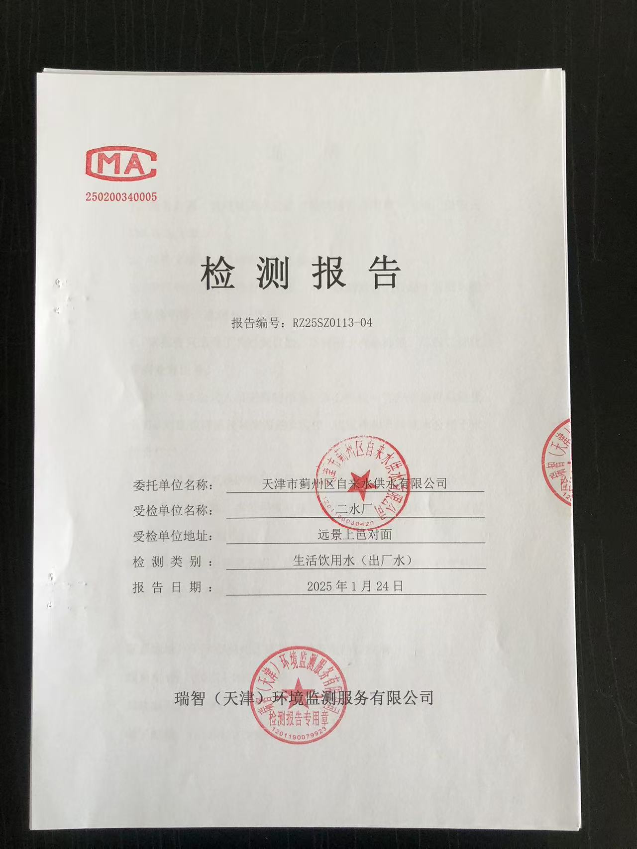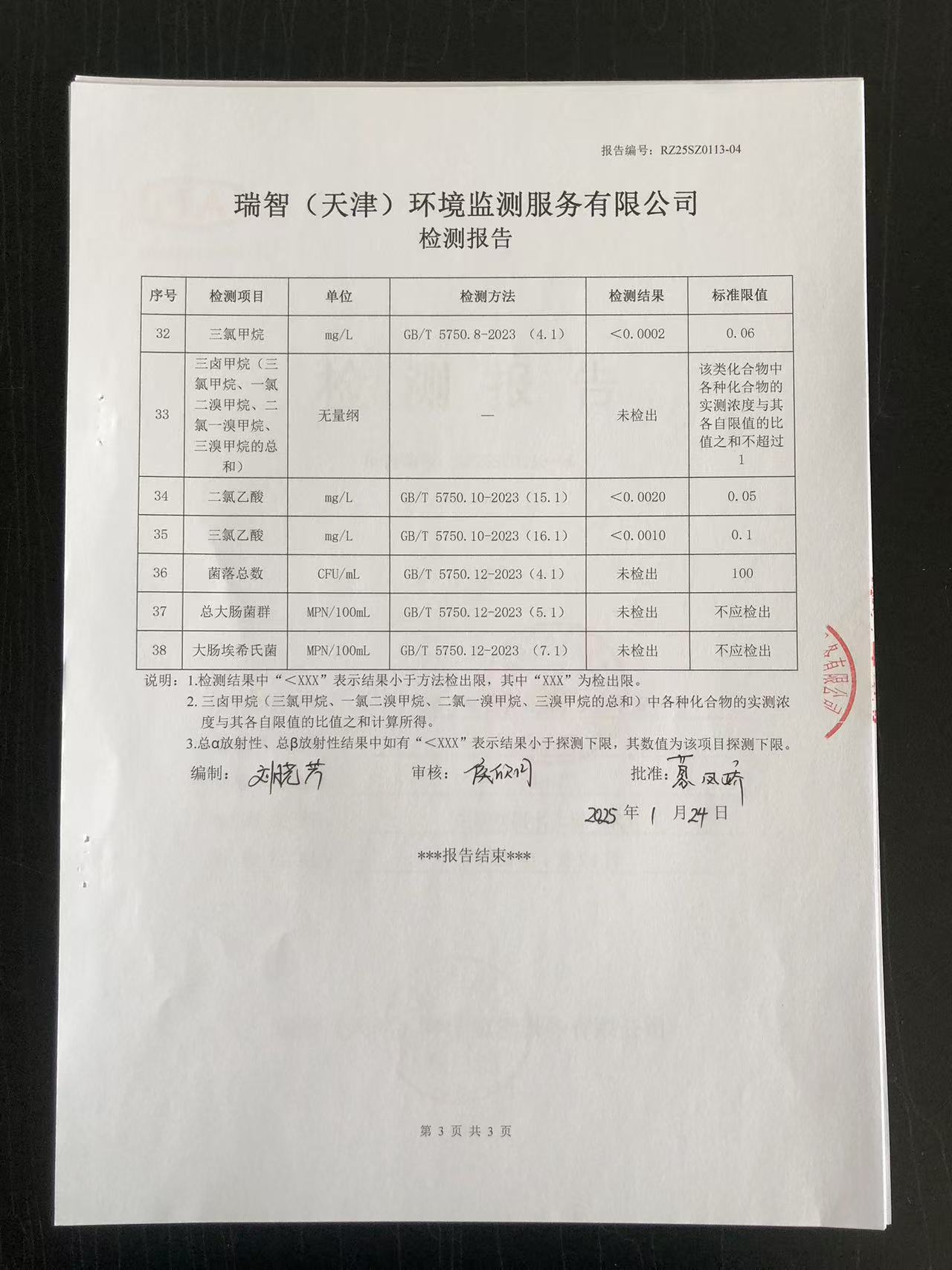 2025年1月份水質檢測報告