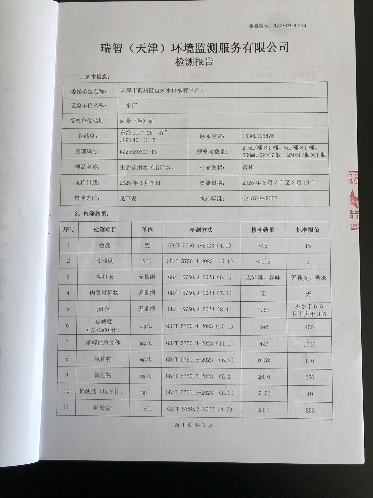 2025年3月份水質(zhì)檢測(cè)報(bào)告