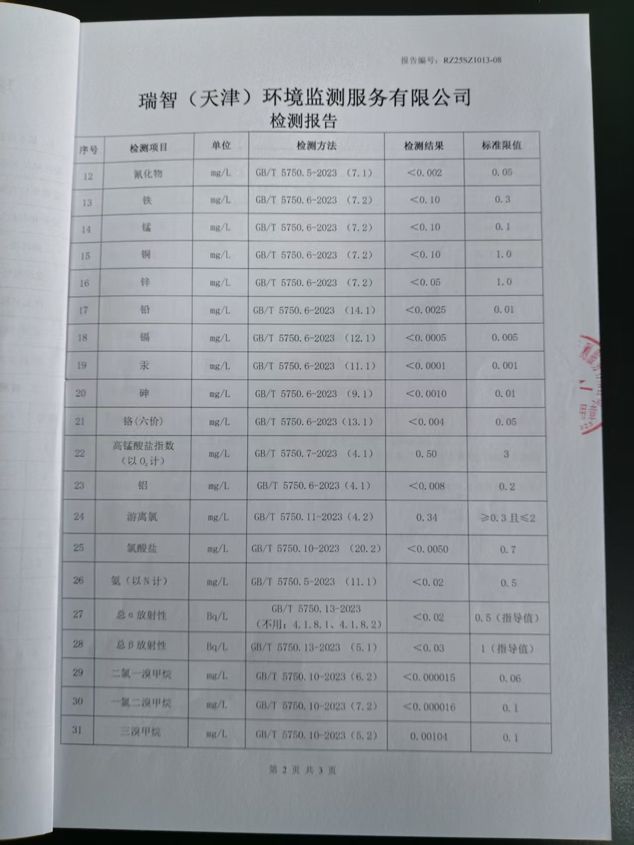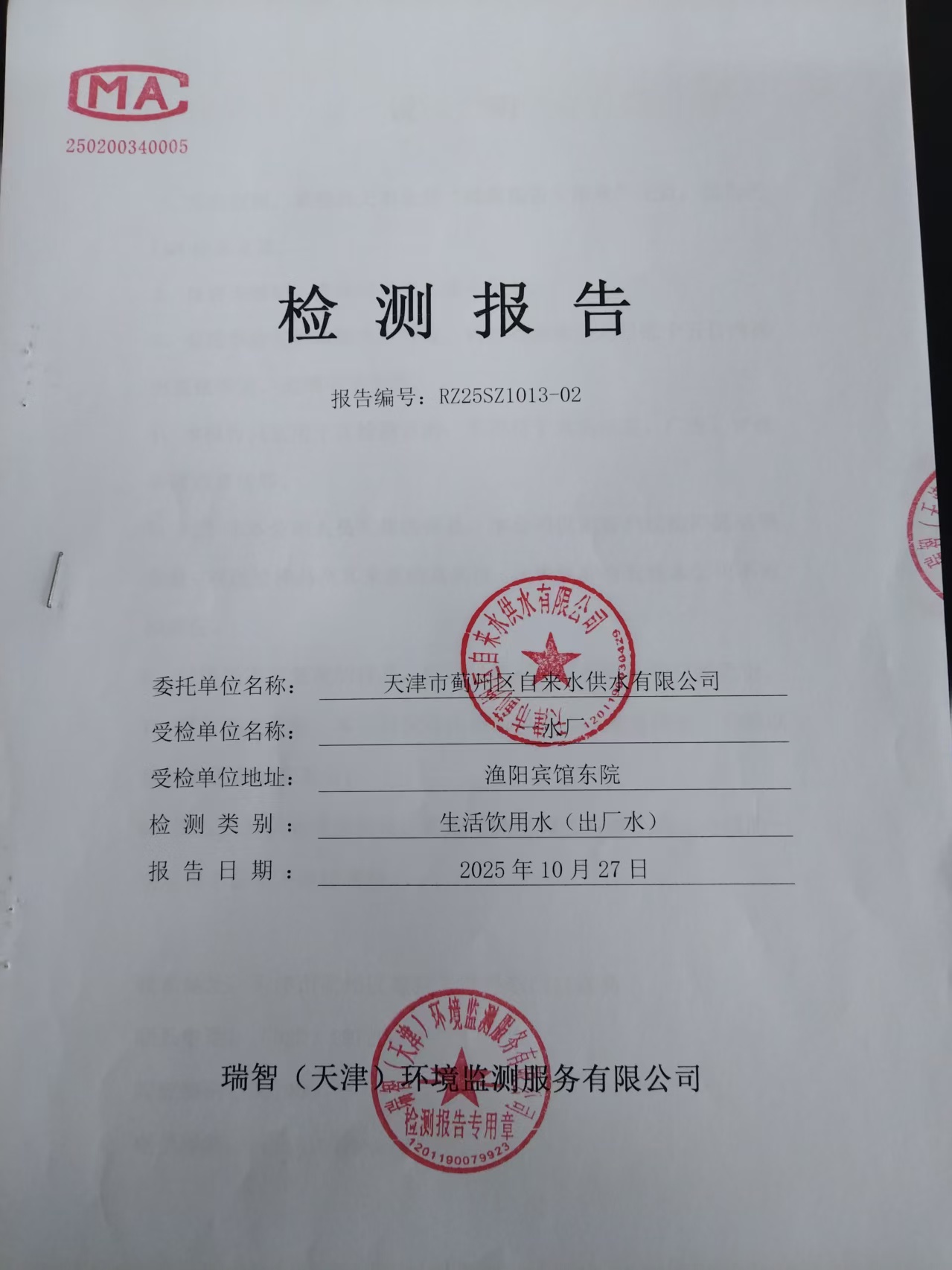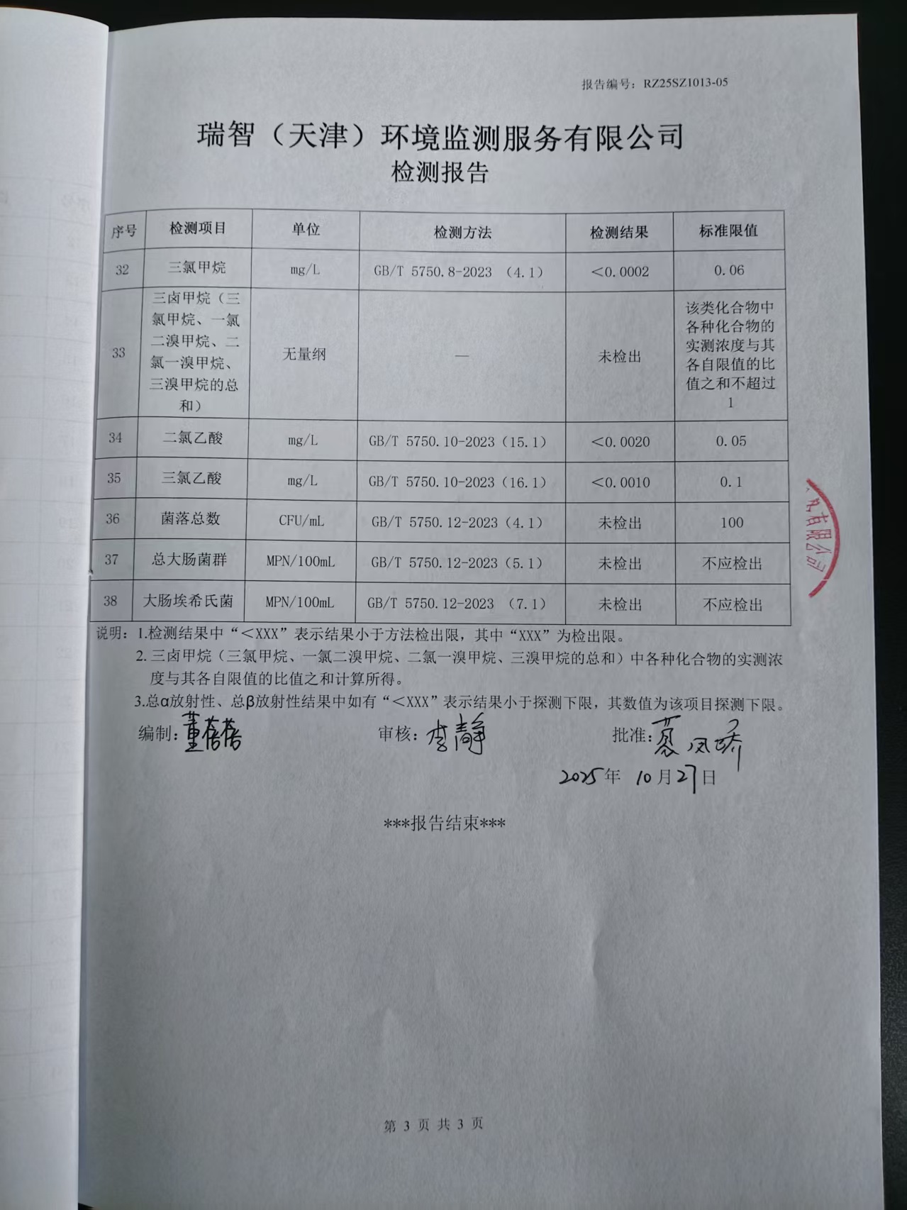 2025年10月份水質(zhì)檢測報告